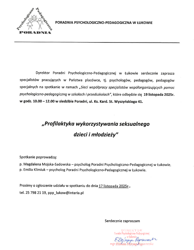 Zaproszenie na spotkanie w ramach “Sieci współpracy specjalistów współorganizujących pomoc psychologiczno-pedagogiczną w szkołach i przedszkolach