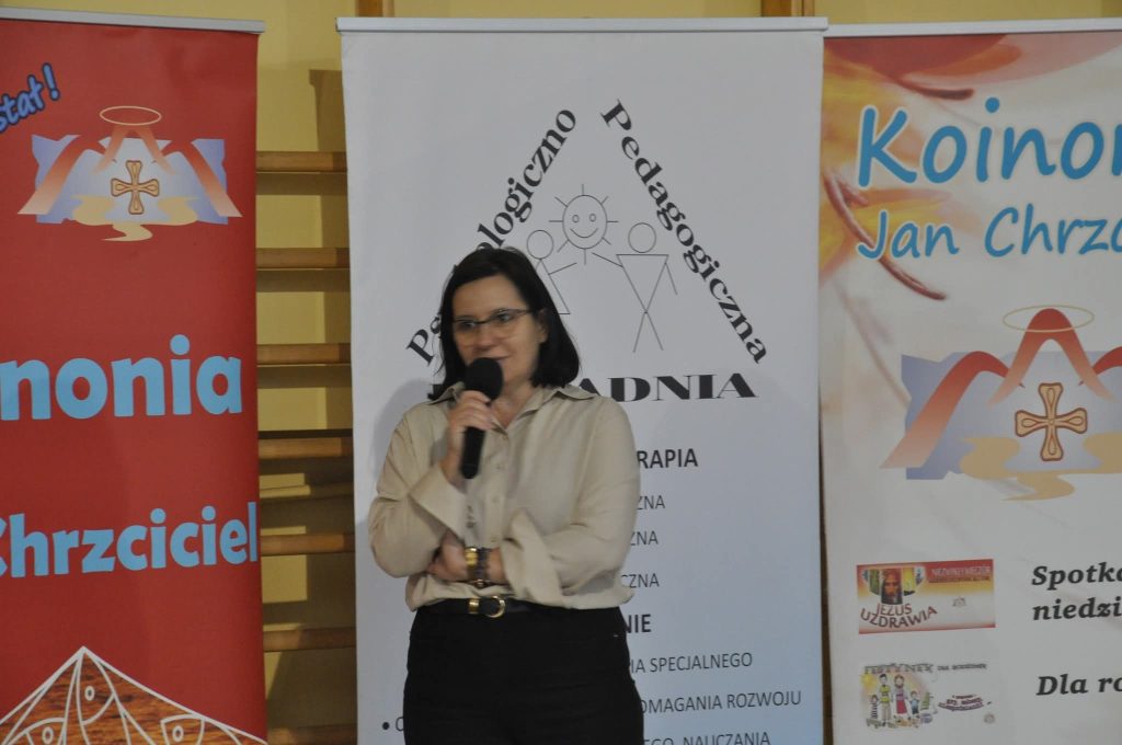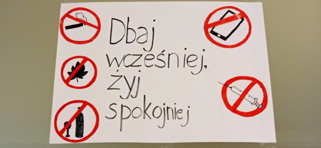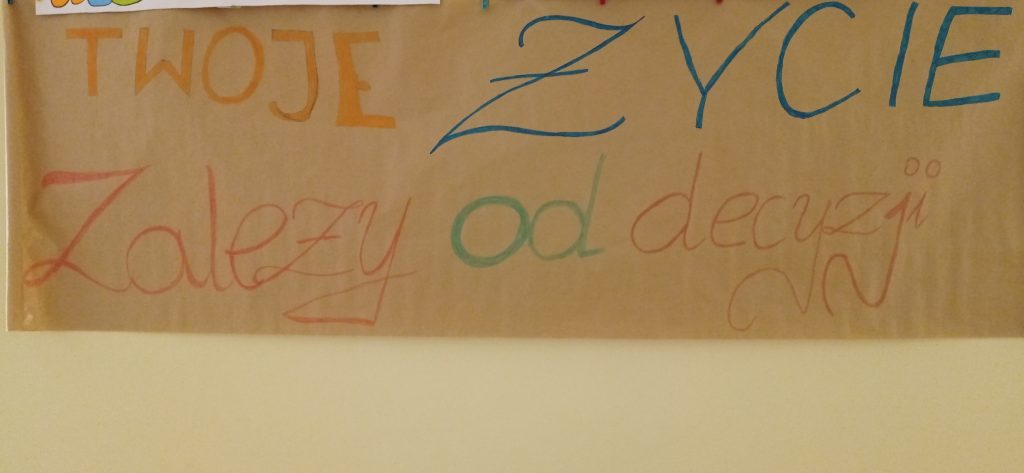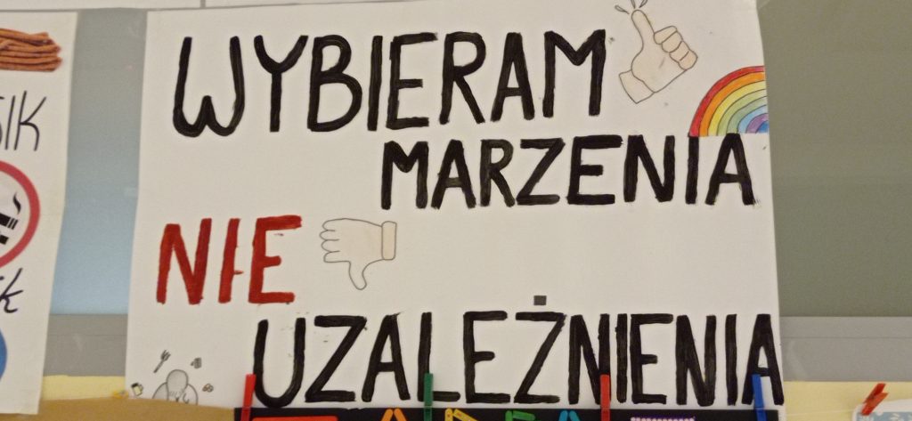 Następnie w trakcie spotkania przedstawiciele poszczególnych szkół przedstawili przygotowane przez siebie hasła profilaktyczne, aby zainspirować się wzajemnie do życia w wolności. Czymś naprawdę wyjątkowych i trafiającym do odbiorców była pantomima w wykonaniu młodych z Koinonii Jan Chrzciciel! Przedstawiona w ekspresyjny sposób odwieczna walka dobra ze złem, ukazanie czyhających zagrożeń i czynników chroniących, skłoniła młodzież do refleksji nad wyborem właściwej drogi życiowej ku wolności – bez nałogów, z poszanowaniem godności drugiego człowieka, opartej na moralnych wartościach.